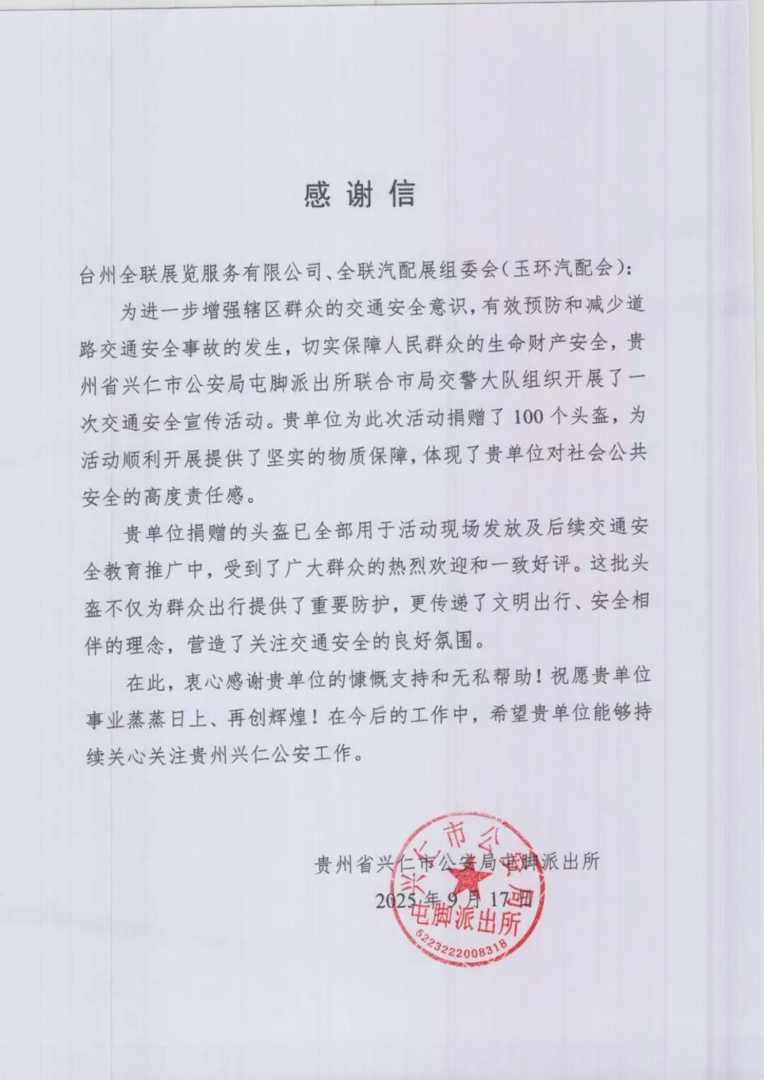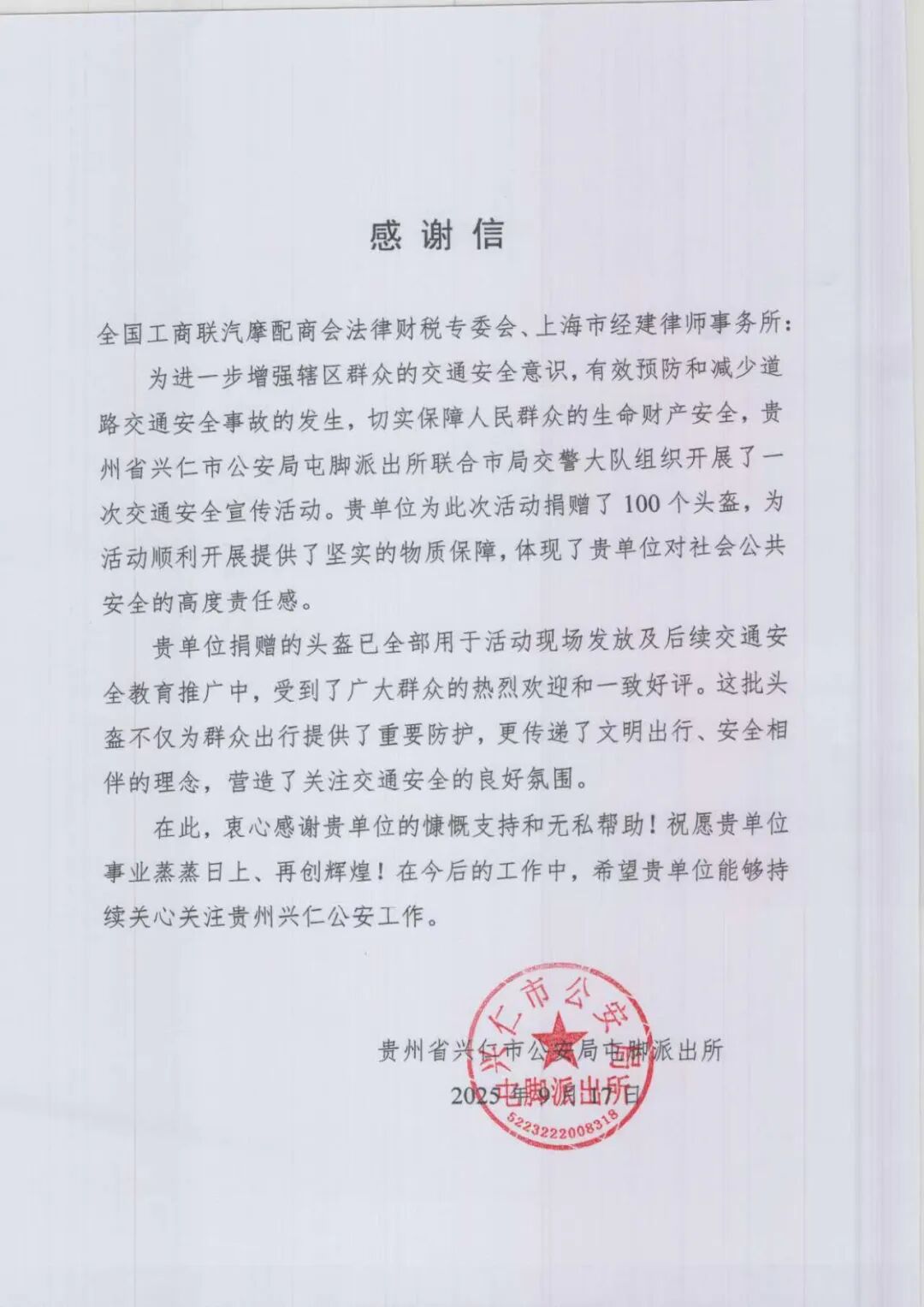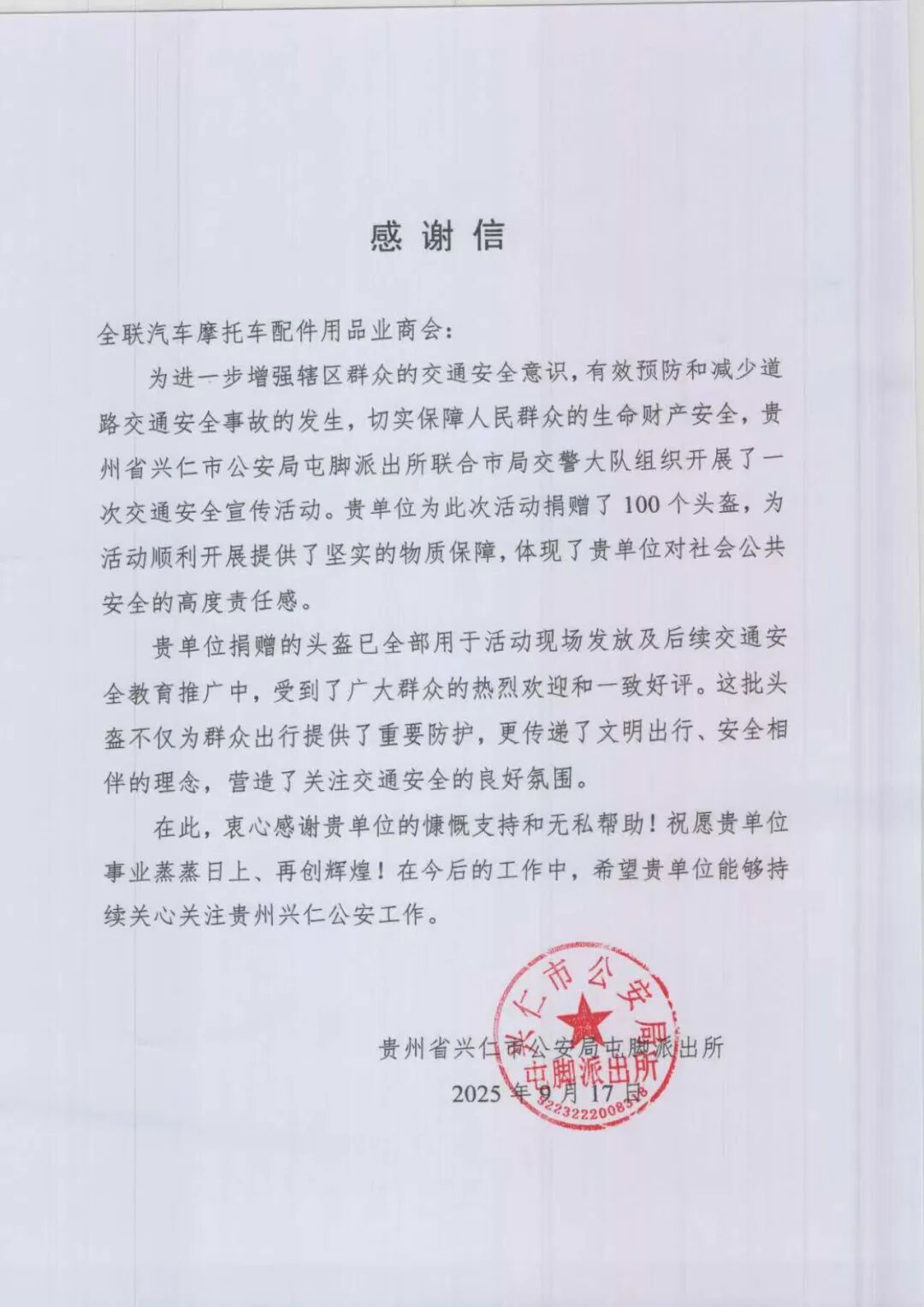 商會公益|愛心頭盔傳遞安全—商會向貴州省興仁市公安局愛心捐贈