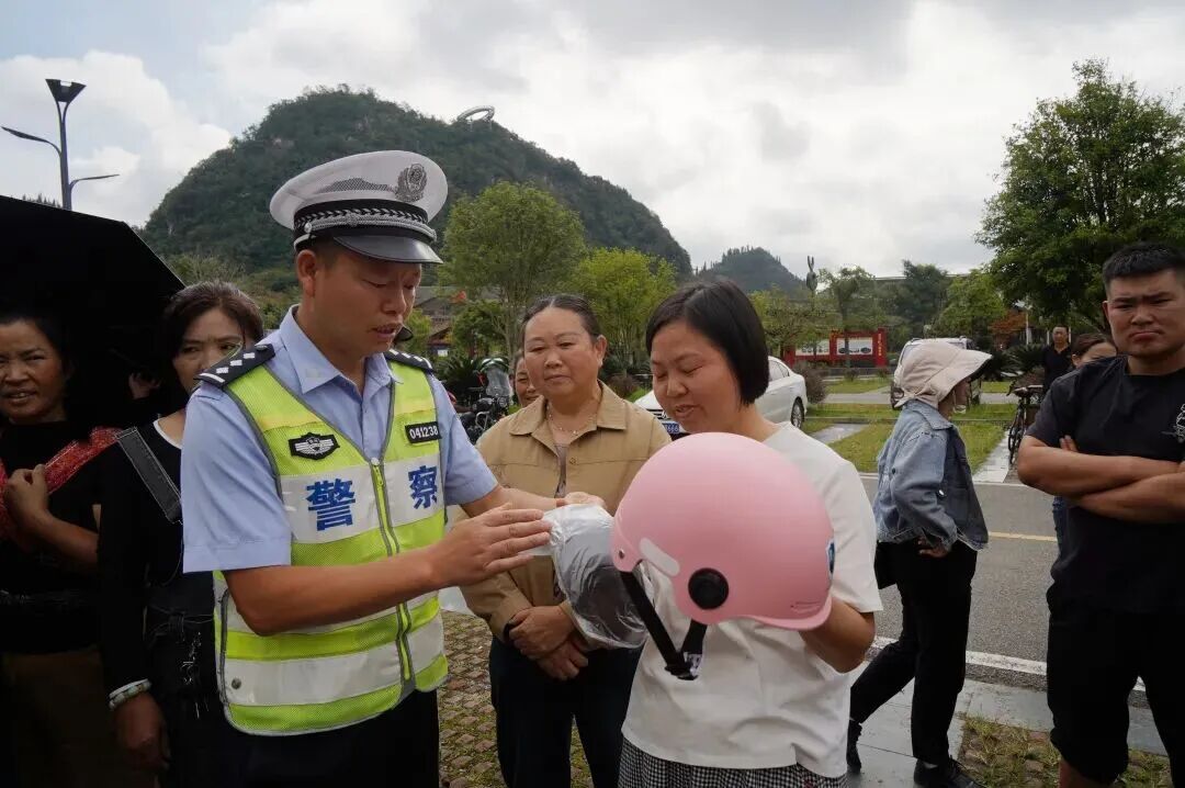 “駕駛電動自行車必須年滿多少周歲?普通二輪摩托車能騎幾個人?答對的獎勵頭盔一個!”民警不僅現場講解安全知識、親自演示正確佩戴頭盔四步法,還通過問答環節,鼓勵群眾踴躍參與交通安全知識互動,并免費贈送頭盔,讓群眾將交通安全意識真正“戴”回家!